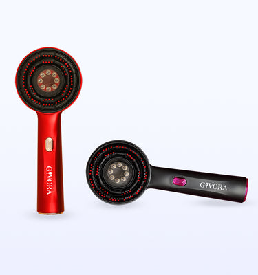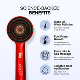 The red light therapy comb with oil diffuser stimulates hair follicles, nourishes the scalp, and promotes vibrant hair growth for healthier, thicker locks.