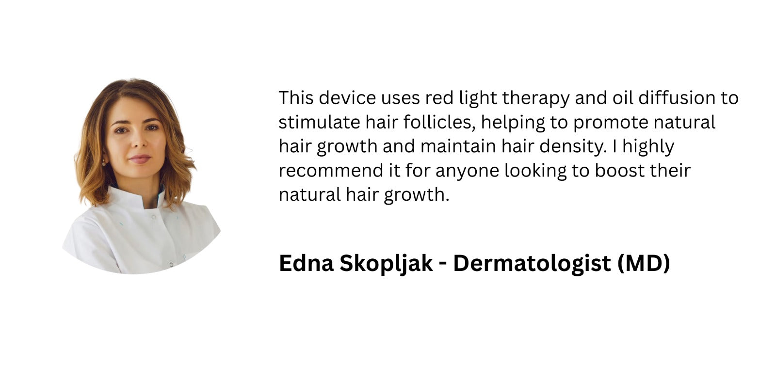 Red light therapy stimulates hair follicles by increasing blood circulation and cellular activity, which promotes natural hair growth. It can also help maintain hair density and strengthen existing hair.